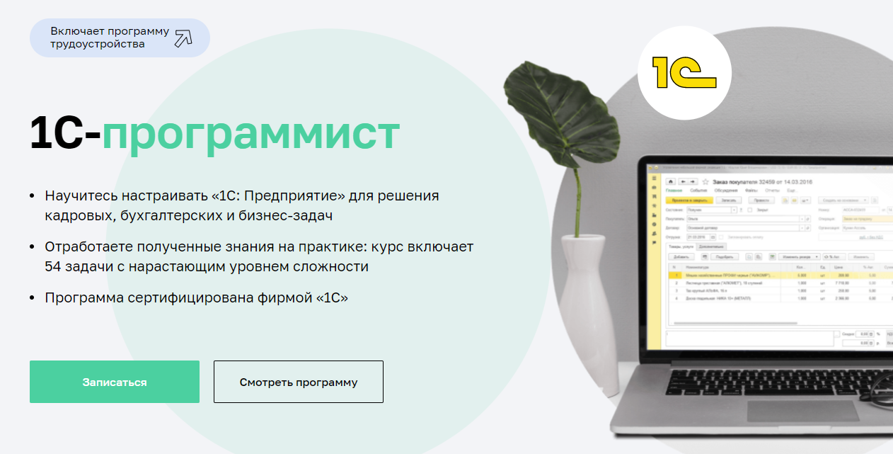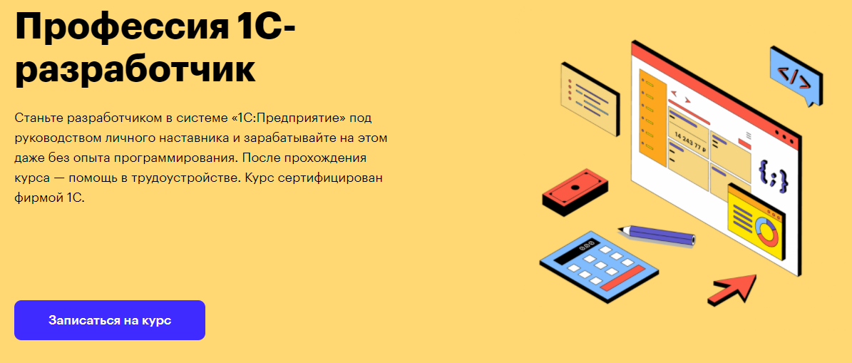 Станьте разработчиком в системе «1С:Предприятие» под руководством личного наставника и зарабатывайте на этом даже без опыта программирования. После прохождения курса — помощь в трудоустройстве. Курс сертифицирован фирмой 1С.