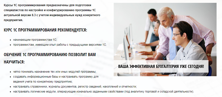 • Свидетельство от фирмы 1С всем, кто завершит курс
